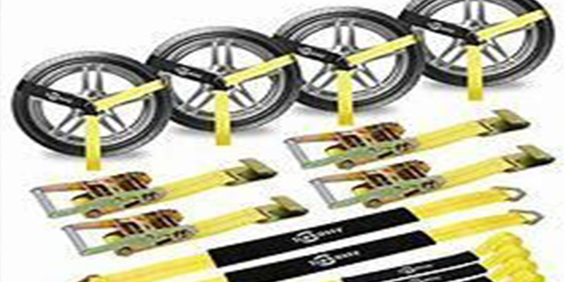 4PK Ratchet Car Tie Down Straps, Heavy Duty 3300lb 2 inch x 96 inch Tire Strap Tie Downs with Flat Hooks.
